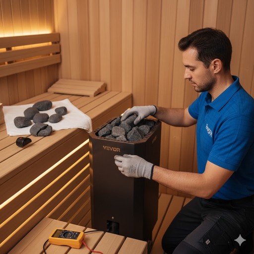 We visually inspect the heater and electrical connections, and carefully examine sauna stones for cracks or deterioration. Cracked stones are replaced, and all stones are cleaned and realigned to ensure optimal airflow and efficient heat distribution for the perfect steam